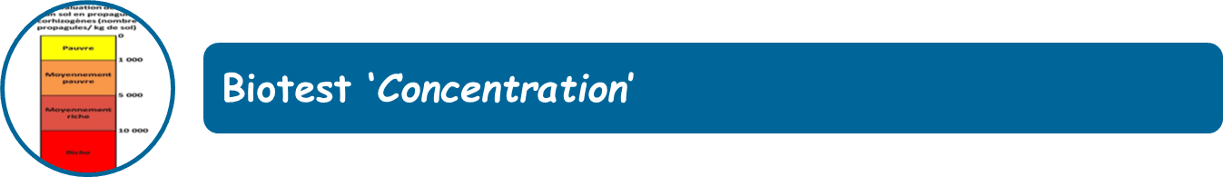 Ce Biotest permet d’apprécier la concentration en champignons formant les mycorhizes à arbuscules d’un sol (ou d’un substrat, produit). Il traduit la richesse de l’échantillon testé en propagules aptes à générer la mycorhization.